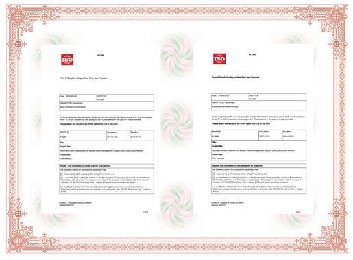 After these two international standard drafts proposed, the member states of ISO Technical Committee on Ships and Marine technology (ISO/TC8) have given enthusiastic response and support, both of two standards are successfully approved as new projects in the committee's work programme, afterwards will be developed under the leadership of Sunrui united with 714 research institute. China, Japan, USA, Russia, Denmark and Panama of these 6 countries have nominated experts to participate actively in the development of the projects. These two standards will be closely concentrated on international convention requirements of ballast water management as well as urgent demand on how to implement the Convention, and will provide significant and reliable technical support for hydrogen safety measures, health and risk assessment in terms of design, installation and risk control requirements on ballasting water management system using electrolytic method.