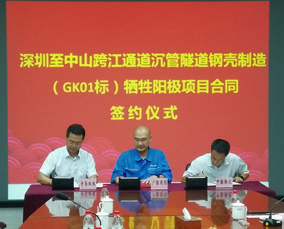 On July 19, the Signing Ceremony of Sacrificial Anode Cathodic Protection Project for All Bid Packages of Shenzhen―Zhongshan Bridge Undersea Tunnel Project was held at Guangzhou Shipyard International and Huangpu Wenchong Shipyard. Qingdao SunRui Marine Environment Engineering Co., Ltd. (hereinafter referred to as SunRui) won the bid. The total contract amount of the Cathodic Protection Project is nearly RMB 180 million, which is by far the largest sacrificial anode cathodic protection contract in China.