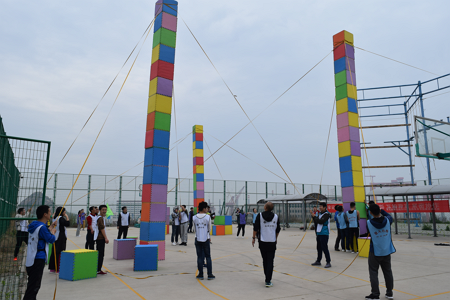 在為期一天的培訓(xùn)過(guò)程中,先后進(jìn)行了破冰起航、搶灘登陸、通天塔、超級(jí)過(guò)山車、動(dòng)力圈等5項(xiàng)生動(dòng)有趣、充滿挑戰(zhàn)的體驗(yàn)式拓展培訓(xùn)項(xiàng)目。一個(gè)個(gè)精心設(shè)計(jì)的拓展項(xiàng)目激發(fā)了濃厚的興趣與熱情,在每組隊(duì)員的傾力協(xié)助下,攻克了一個(gè)個(gè)曾經(jīng)看起來(lái)不可能完成的任務(wù),現(xiàn)場(chǎng)不時(shí)響起雷鳴般的掌聲和歡呼聲,項(xiàng)目挑戰(zhàn)成功后大家共同分享成功的喜悅,親身感受到團(tuán)隊(duì)的力量是巨大的,不可戰(zhàn)勝的。