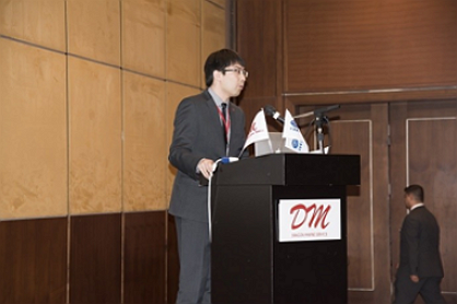 海外項(xiàng)目經(jīng)理李今朝在推介會(huì)上宣傳壓載水管理系統(tǒng)產(chǎn)品