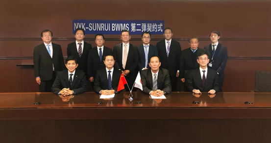 1月17日,青島雙瑞公司與日本最大船東公司日本郵船株式會(huì)社(以下簡稱NYK)舉行22艘營運(yùn)船壓載水系統(tǒng)改造項(xiàng)目簽約儀式,雙方合作項(xiàng)目船舶數(shù)量突破110艘。青島雙瑞總經(jīng)理付洪田、NYK專務(wù)經(jīng)營委員丸山英聰、常務(wù)經(jīng)營委員小山智之出席了簽約儀式。