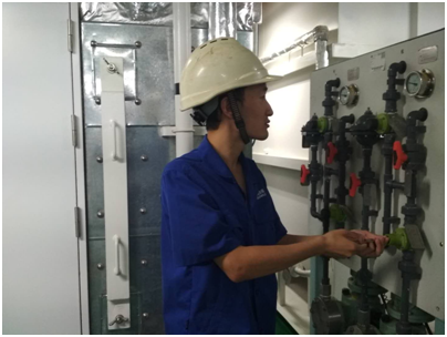 工程調(diào)試人員加班調(diào)試壓載水設(shè)備