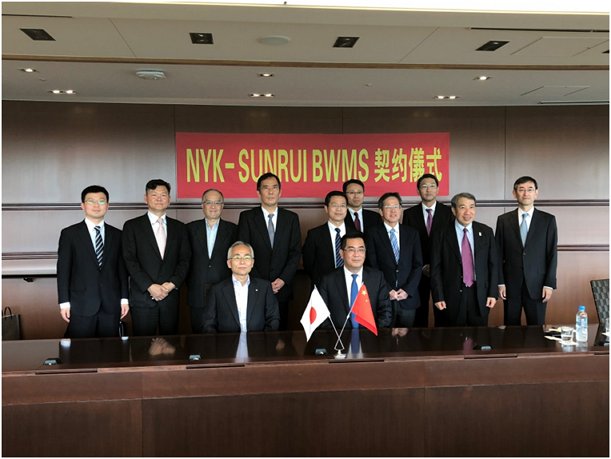 日本最大船東公司日本郵船株式會社(以下簡稱NYK)的89艘營運船將全部選用青島雙瑞B(yǎng)alClor?壓載水管理系統(tǒng)進(jìn)行改裝。7月9日下午,雙方在東京正式簽約,中船重工黨組成員、副總經(jīng)理、中國重工董事長姜仁鋒、青島雙瑞公司總經(jīng)理付洪田等出席了簽約儀式。